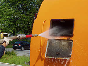 in Begleitung der Politessen - die beiden machten uns den Weg von falsch parkenden PKW`s frei...